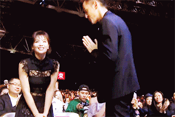 颁奖嘉宾赵雅芝念出得奖的男演员是胡歌时,胡歌起身鞠躬,紧接着走到李雪健老师面前,与李老师耳语:受之有愧( ?& Y+ P. m/ S) F4 w
