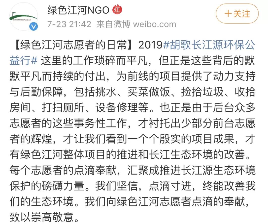 这里没有明星和粉丝,只有公益志愿者。老胡在前线的动态都是由公益官博发出来,默默跑去青海做公益的老胡连条微博都没发