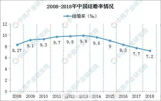 $ Q( b# }8 t. Y. k4 r原来,据国家统计局和民政部数据显示,从全国范围来看,2018年结婚率仅为7.2‰,这个数字创下了近10年来新低。8 K4 d/ X/ y: Z! n% o& u