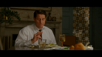 贝丝推倒的花瓶,下一秒变成了萨蒙妮派对上打碎的酒杯。