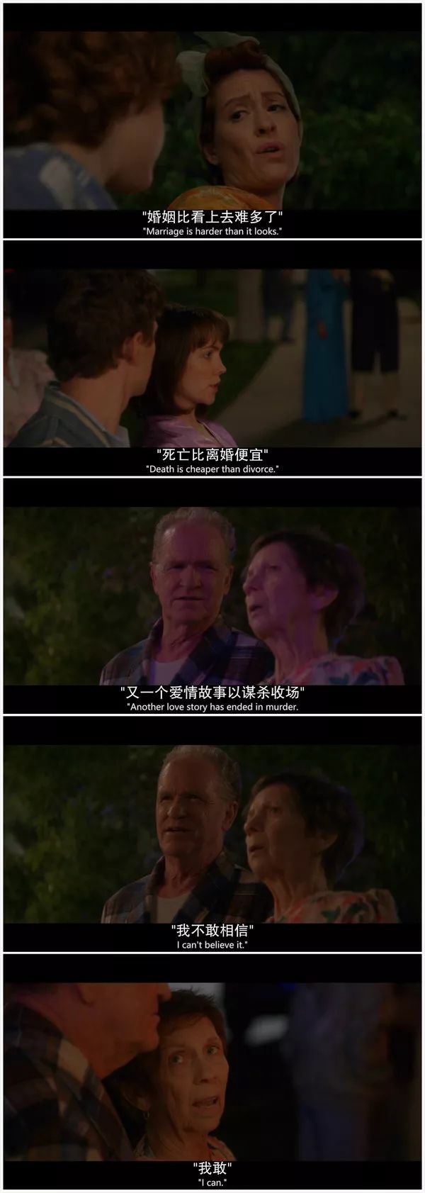 这部电视剧有不少台词都真实的可怕,女人们总想知道自己的丈夫到底有没有出轨,但是得知真相后的她们却不会原谅告诉她们的人,至于丈夫,忍一忍总是会过去的嘛!8 M5 H% t% i1 x6 x$ I+ S7 w2 H6 q
