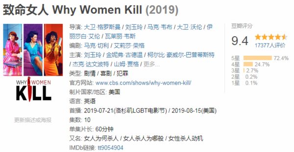 % i0 m0 L6 v2 \9 z2 w& v% m这张图出自7月21日开播的美剧《致命女人》,它的原版英文标题:Why Women Kill?听起来也很带劲。. a; [8 y; L. Q' p. ~: q: A