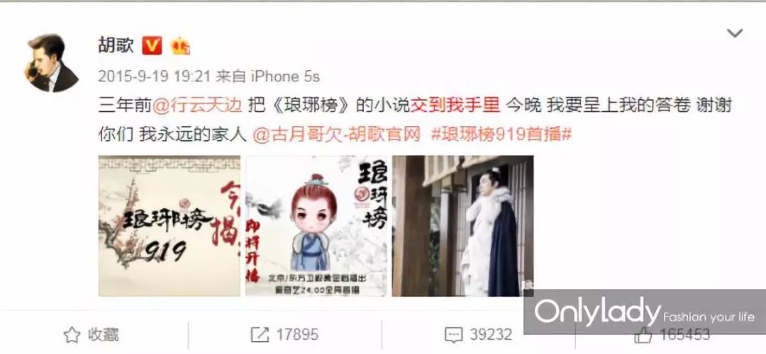 胡歌会在意粉丝送给自己的礼物,《琅琊榜》播出时,他曾在微博公开感谢送书的粉丝。