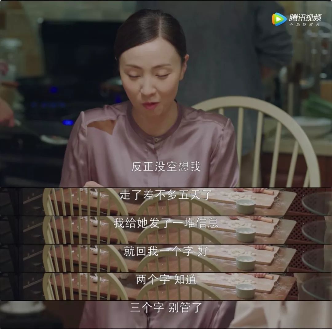 5 r5 D! h. v0 y1 F就像《小欢喜》里的三对父母,女儿离家后,宋倩不无失落地说:“走了差不多五天了,我给她发了一堆信息,就回我一个字:好,两个字:知道,三个字:别管了。”