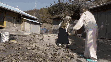 帮奶奶系扣子,熟练的动作早已是几十年的习惯