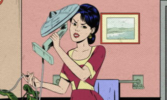 结婚纪念日,妻子将电熨斗砸向丈夫的脑袋,然后优雅地继续吃饭。