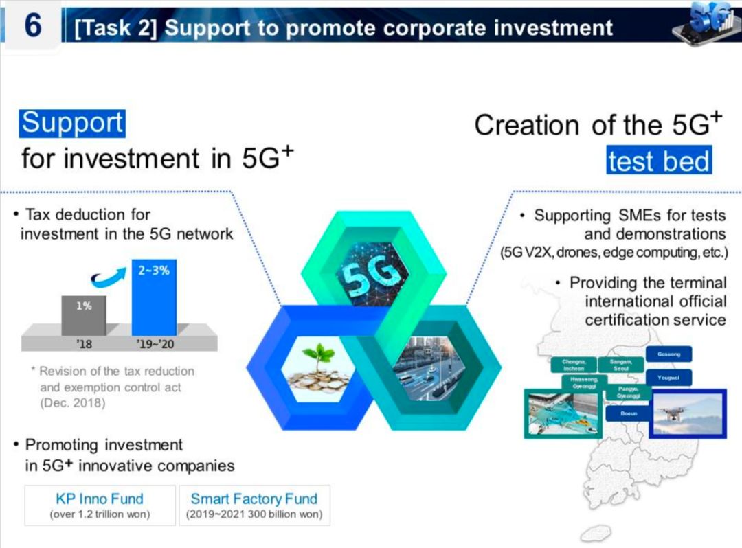 4 x. t1 j- w- j1 Z% y9 M& E9 y* N除了运营商自身有需求,韩国5G的快速发展还要得益于政府的大力推动与支持。; Y& y! H% d$ A' B& U