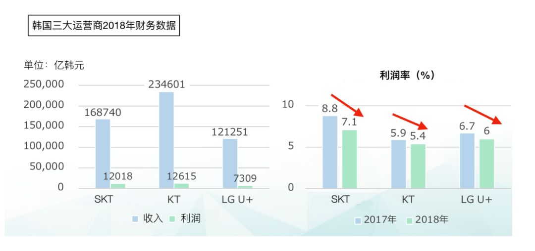 $ q( i7 Y) o8 k1 a8 l在韩国政府降费政策牵引下,在激烈的市场竞争环境以及市场趋于饱和的现状之下,在5G商用之前,韩国三大运营商的利润率在5.4%-9%之间,低于中国移动,更是远远低于日本运营商。: z. ~# }) [( {3 U2 o