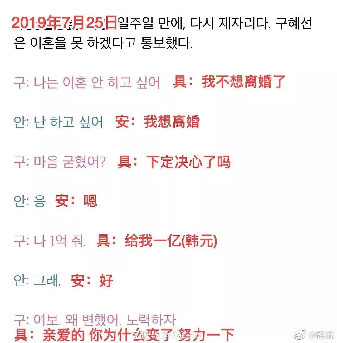 , a4 Q/ N3 ]" j他俩在离婚上的短信回合相当多,多到令人疲惫,男方要离,女方因为爸爸妈妈猫等各种原因不要离,女方要求给一亿韩元,男方一口答应了,女方又说:亲爱的你为什么再努力一下?8 m% q3 I' M; l3 s6 c4 R