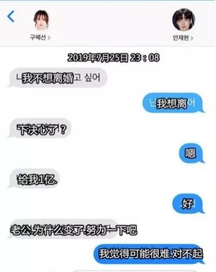 再来看他们对离婚事宜的讨论。从短信内容来看,两人5月份就已经在谈论离婚了,中间具惠善出现过几次反复。