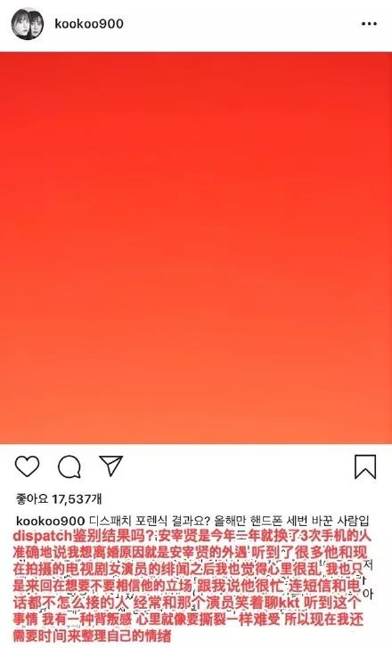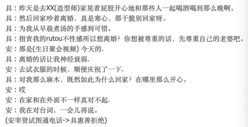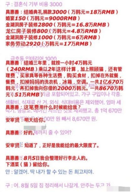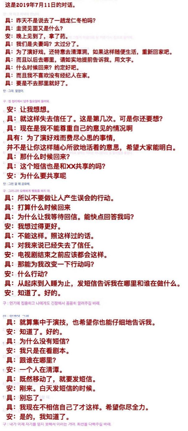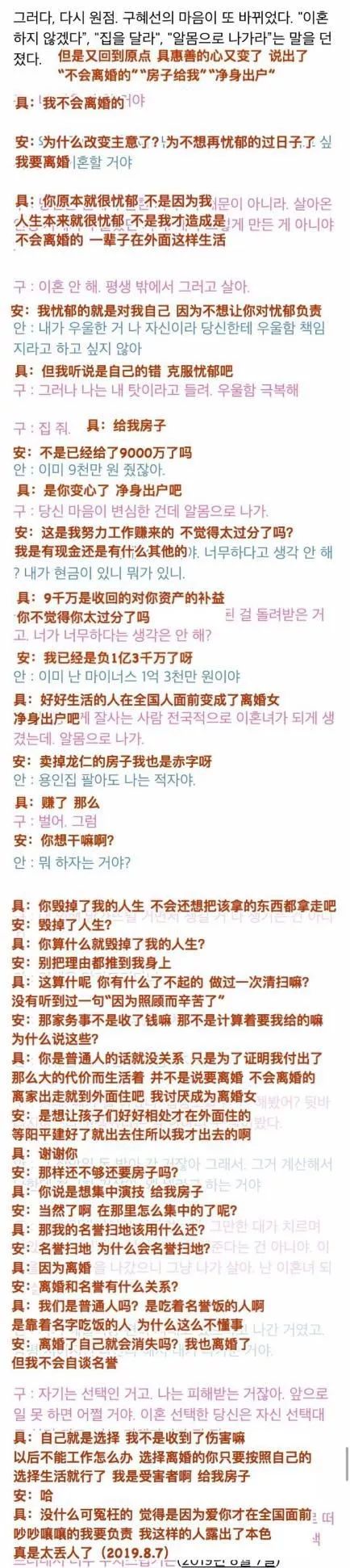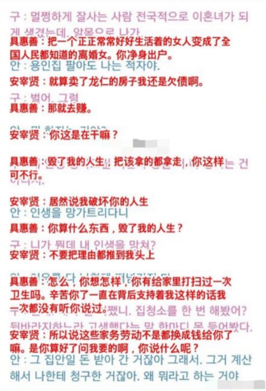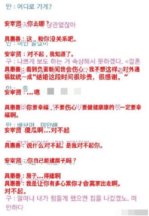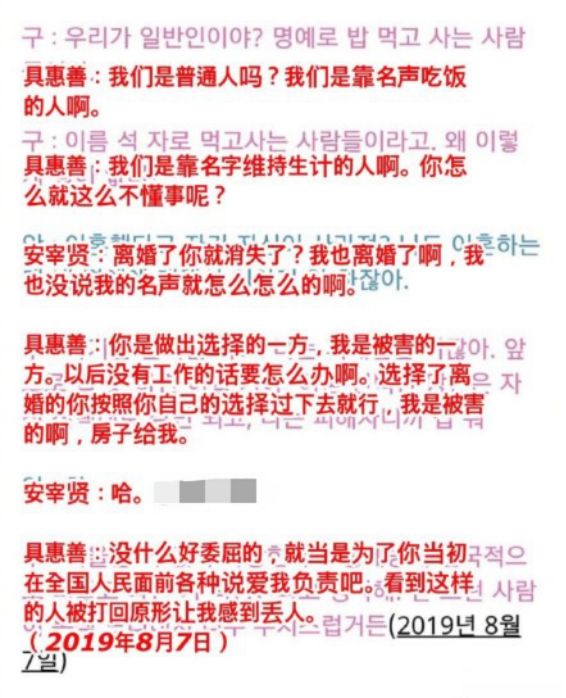 ' N1 \; v$ u- ~: K! L7 L我们进行过事件的相关梳理,文章传送门。之前,因为具惠善对婚姻生活的控诉击中了千万网友的心,具惠善成了大家都心疼的女生。然而从9月4日起,D社曝光了大量安宰贤和具惠善结婚两年间的短信内容,故事开始反转。 7 ^! J! J3 |% Q' T# g3 X. q