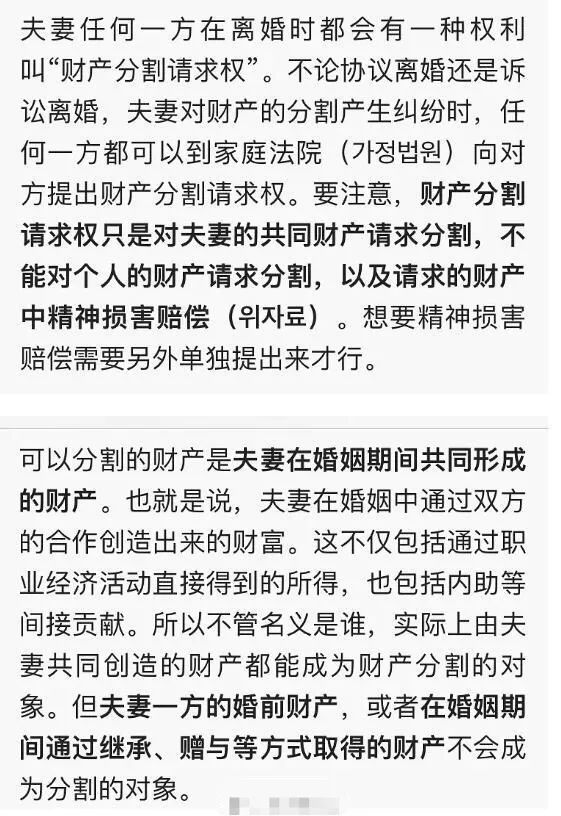 根据韩国法律规定,婚前财产并不支持夫妻财产分割,这也是目前网友攻击具惠善最严重的部分,网友认为,在男方未出轨(安宰贤已经向被出轨指控牵连的女演员吴涟序道歉,吴涟序方表示会采取法律措施应对诽谤,出轨暂无实锤)、家暴或不当行为,即男方没有明显过错的情况下,向男方索要婚前财产并不合情理。 h- c A* w! Q2 F/ I/ ^* C" Q