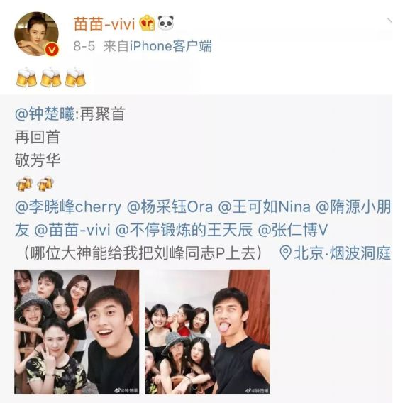 前段时间,钟楚曦发了一条微博,是电影《芳华》里的演员再聚首的照片,苗苗转发,而杨采钰则只是赞了一下:8 ]: J% g" G0 Q+ [, `7 z