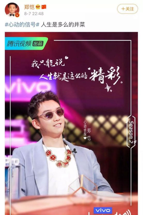 所以啊,俩人说不清道不明,孙骁骁这种略显“绿茶”的做法也让自己风评不佳。现在孙骁骁和任重在一起,郑恺于是又无辜上了热搜。 郑恺当然不吃亏,趁热在七夕节发了条微博,既宣传了新节目,又算是一种幽默的回应,聪明。6 N8 ]; l: J5 Y: I0 K0 p9 w