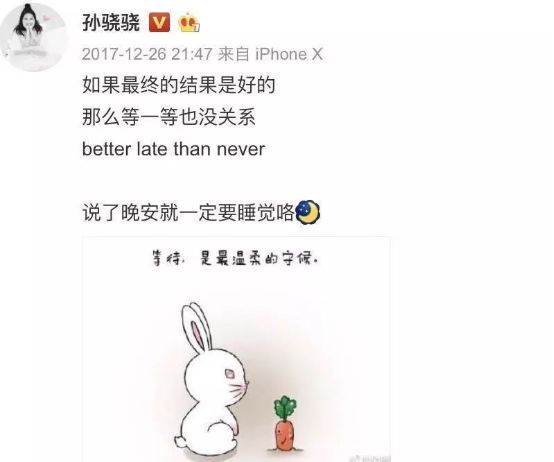 / Y* A" P. L1 Q, [3 l' G' J郑恺和程晓玥分手后,孙骁骁也发博了:# ?. S$ G( H7 J3 }# c7 x
