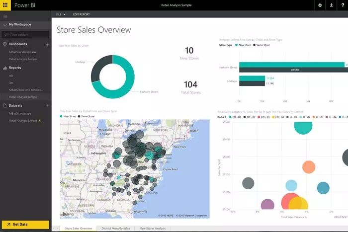 Microsoft Power BI 是一套主要在Azure上运行的业务分析工具,可以连接到数百个数据源,简化数据准备,并驱动点对点的分析。它也是市场上成本最低的BI解决方案之一,Power BI Pro是一款免费的Windows桌面分析工具和免费的移动查看应用程序,每个用户每月的价格为9.99美元。Power BI Premium是一个虚拟服务器,根据容量的不同,其价格从每月4995美元起,不需要指定用户许可证,它包含Power BI Report server,可以在本地运行。! x4 N$ ~) R7 q