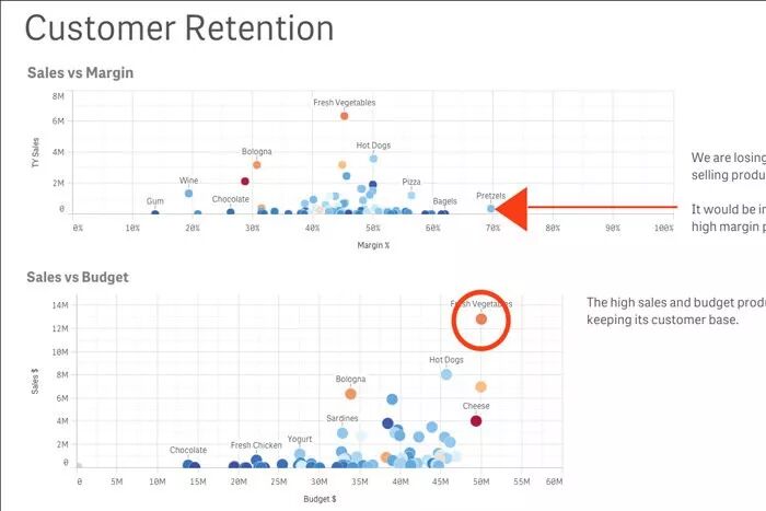 4 G. s! [5 l; ?! [, T' B% C当使用Qlik Sense时,可以将书签保存到当前工作表中的当前选择项中。然后,你可以将书签组合到故事中,并添加文本和其他注释,使故事具有自解释性。如果你正在使用一个故事进行现场演示,那么你可以深入到源代码中,以获得任何可视化的答案,并演示出现的问题。一旦你回答了这个问题,你就可以很容易地回到故事中去。2 s, @% Q7 e9 p$ I- e5 d2 H* H