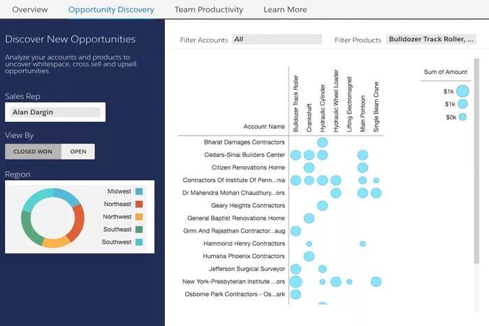 1 ~% l u# B0 B2 X0 _$ CSalesforce Einstein Analytics 给用户提供了对其Salesforce数据的清晰视图,从而帮助用户突出关键的性能指标和趋势。Einstein Analytics平台允许用户使用Salesforce和非Salesforce数据构建自定义的点选和单击交互式可视化、仪表板,并使用集成的自助服务数据准备进行分析。此外,Salesforce Einstein还为销售、服务、B2B营销和人工智能辅助发现提供专门的应用程序。