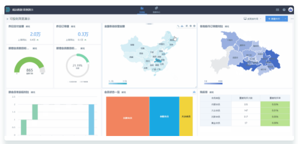 帆软的BI产品,目前在国内数据分析行业中算是首屈一指,其主打的是超大数据量性能和自助式分析2个特点,最高可以支撑20亿数据的秒级呈现,在功能方面跟Tableau很接近,适用于企业中的技术人员、业务人员和数据分析师,可以完全自主的进行探索式分析。