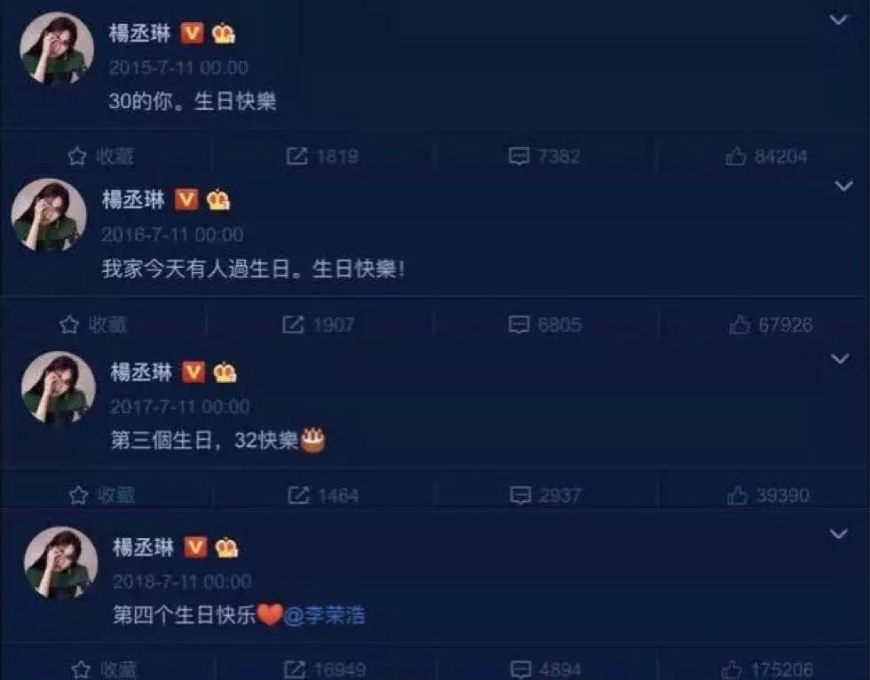 2019年7月11日是李荣浩34岁生日,他在微博上发文宣布自己已经成功求婚杨丞琳。