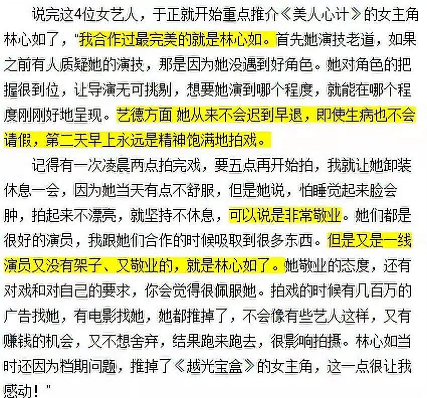 自结束合作后,于正不止一次的暗讽过林心如忘恩负义: