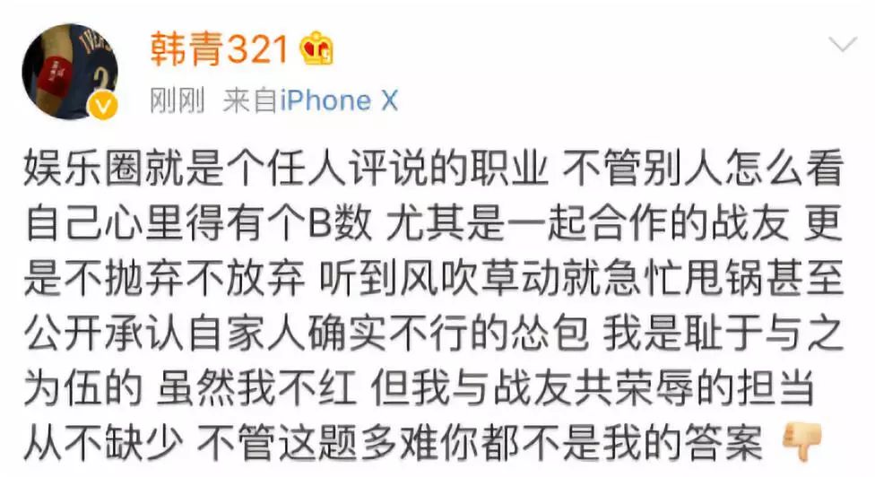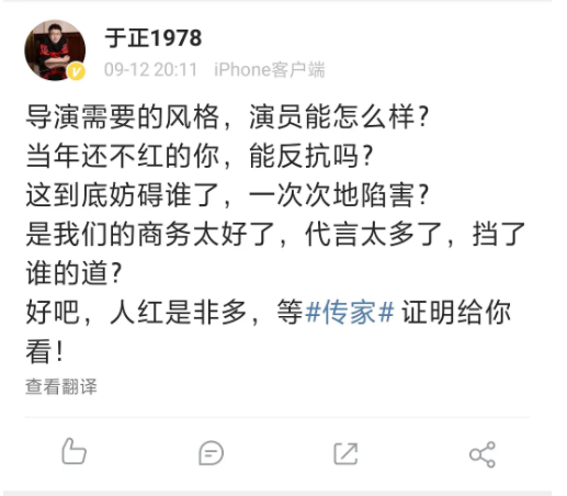 6 G+ S0 }% W' N) [8 M2 i, _7 Z# i+ s0 b; `不得不说,于正这波操作不仅自己得罪了人,还替吴谨言把不该得罪的都得罪了~