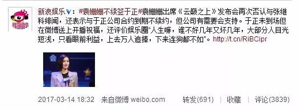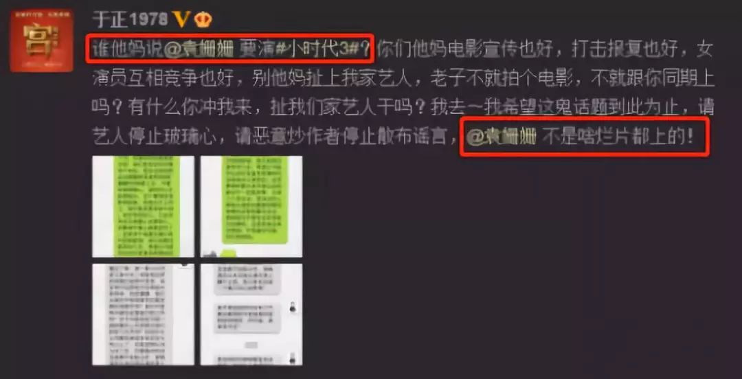袁姗姗刚一表示约满不续,于正这边小作文就蠢蠢欲动了起来:; F3 e! _/ n b% K1 C; b- u