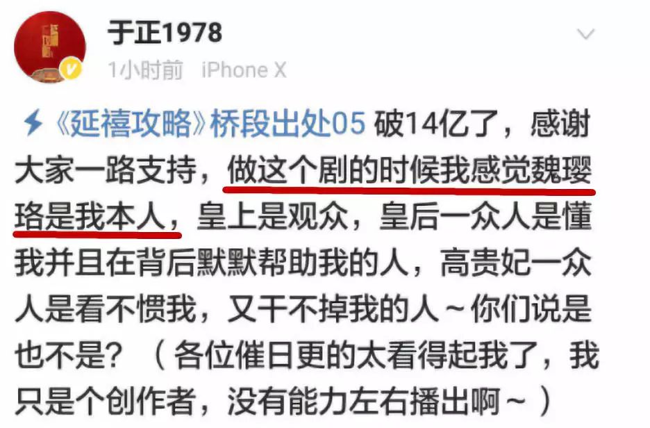 到了《延禧攻略》时期,于正又站出来表示:我就是魏璎珞。