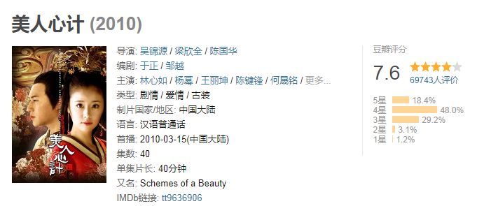 & y& s8 g$ L) t U: P, ]. G(豆瓣评分最高的还是多年前的《美人心计》)