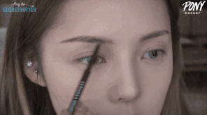 2 C$ s( Q. s% T. i+ I' _在黑眼球与鼻翼的延长线找到眉峰,画出微微上挑有弧度的眉形,眉尾适当拉长。) Y3 t" i& b- D7 l
