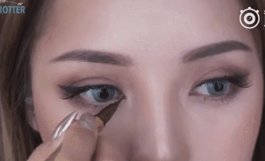 紧贴睫毛根部,向外画一条顺滑的眼线,在眼尾处稍微加粗拉长,画出猫眼的效果,睫毛根部的空隙也要填满。1 z: u" D5 b+ m5 ]