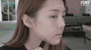 / o/ C* p) Z, _) ~5 b2 H* m选择色号深一号的粉底,用潮湿的海绵按压均匀,然后用高光在额头、苹果肌、鼻梁和下巴轻扫,颧骨下方和下颚两侧刷阴影粉,增加立体感。2 h: l3 R* L# a) a0 s
