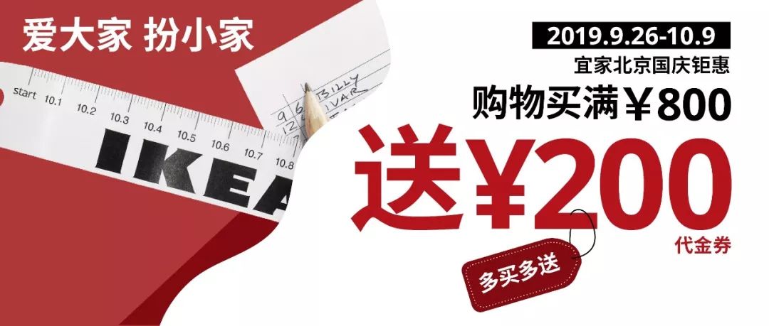 7 f' t5 P+ L6 s8 S' g- j9.26-10.9,宜家北京商场国庆钜惠:购物满¥8000送¥200代金券,还有更多国庆特惠系列和经典产品系列优惠同享!
