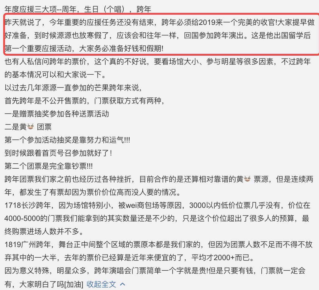 王源粉丝很看重这次跨年演唱会,他们认为,这将是王源出国后的第一次重要应援活动,粉丝必须打起精神,给王源做好的应援。王源出国之前,也会担心自己闭关上学会掉粉,而回国之后的活动最能反应真实状况,如果到时候没有多少人给他应援,王源也会失落吧。所以不希望王源失落,所以提前两个月开始攒钱。