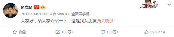 6 S" x7 D" D& e& W果不其然,自从公开和关晓彤的恋情之后,鹿晗就再也没为自己超高的人气烦恼过: X. \3 J1 w2 F* {, q6 f