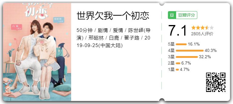 有假期里靠看剧度日的人吗?去酱我发现最近一个月里,低成本小甜饼网剧似乎都陷入了“用吻戏博出圈”的怪圈。比如上周去酱测评过的《国民老公2》里,有引起大众不适的面条吻。 出圈是真的,收到的几乎都是负面评价也是真的…但甜宠剧宣传对推吻戏这件事没有放弃!不管三七二十一有吻戏推就完事儿了!紧跟着《国民老公2》的“面条吻”,《世界欠我一个初恋》中的#初恋醉酒吻#也迅速冲上热搜。[img=415.2pt,70.5pt]https://mmbiz.qpic.cn/mmbiz_jpg/92CDaZ9gX5yTyj98vm7Gb1Rvdffice3ZjhWib1CuqFhiaCwUu4VX05xLmJibov7aeejpKGAfxPYI7PZYaibTqhFiaqFw/640?wx_fmt=jpeg[/img]去酱好奇的点进去一看: 嗯?只不过是一段平平无奇的吻戏而已啊?但这个男主角就hin面熟了,靠演沙雕古偶甜剧拥有姓名的邢昭林,之前提过的“绿光夹心吻”就有他的姓名。 虽然出圈的吻戏相对比较平淡,但《世界欠我一个初恋》的口碑海星,豆瓣评分有7.1↓,是可以一看的分数。 假期留在家里陪大家唠嗑的去酱,已经看了好几天了![img=144.0pt,143.55pt]https://mmbiz.qpic.cn/mmbiz_jpg/92CDaZ9gX5ywlDzicc0xPKicFib17wibrhvtSVicwd4HnCsbfDIftrUShEKaiaRCJ2GB5X06X9AtwcwxRjbzaaMLKFug/640?wx_fmt=jpeg[/img]