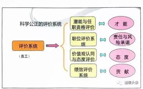 6 t) _3 n7 u1 a- m5 I: H4 N华为当年就提出一个评价系统,一个企业价值创造的载体是员工。实际上要从四个方面来看,一个是价值创造的能力,这叫能力评价;然后是在价值创造中的地位,这叫责任与风险承诺;在价值创造中的表现,这是态度;价值创造的结果,这是贡献。依据这四个方面,建立起企业科学公正的评价体系。5 K+ t! m1 p( F# i- E; [& ~+ w