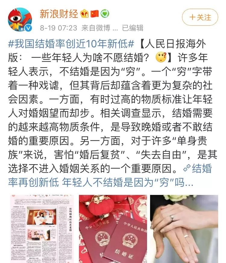 . p, s7 ]' Z4 r今年,我国迎来结婚率十年来新低。