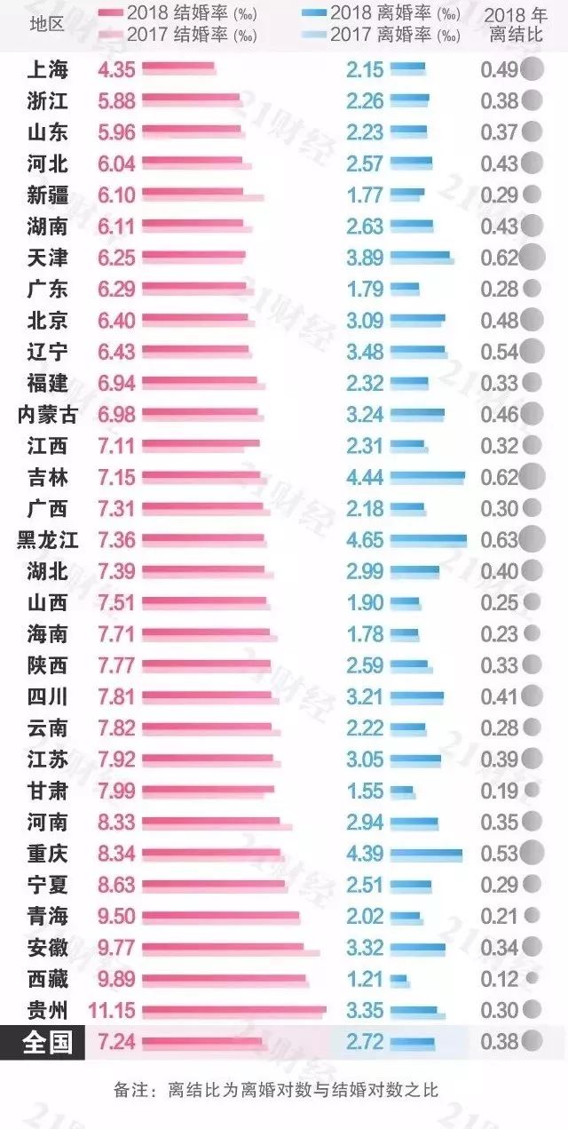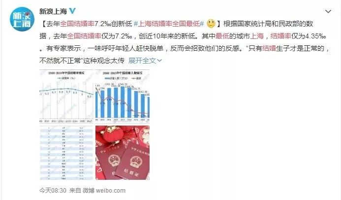 2018年全国结婚率仅为7.2‰,