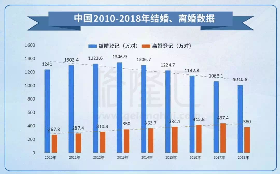 结婚率持续走低,离婚率却逐年攀升。     # h( w) z+ c l" X4 y7 @