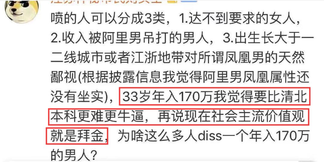 所以,阿里男没啥可得意的,他的170万年薪也好,北五环的房子也好,这些用来交换的价值,用网友的话来说就是——