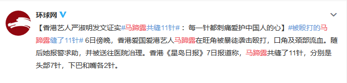 香港爱国女艺人马蹄露 ,因拍下乱港分子的恶行,