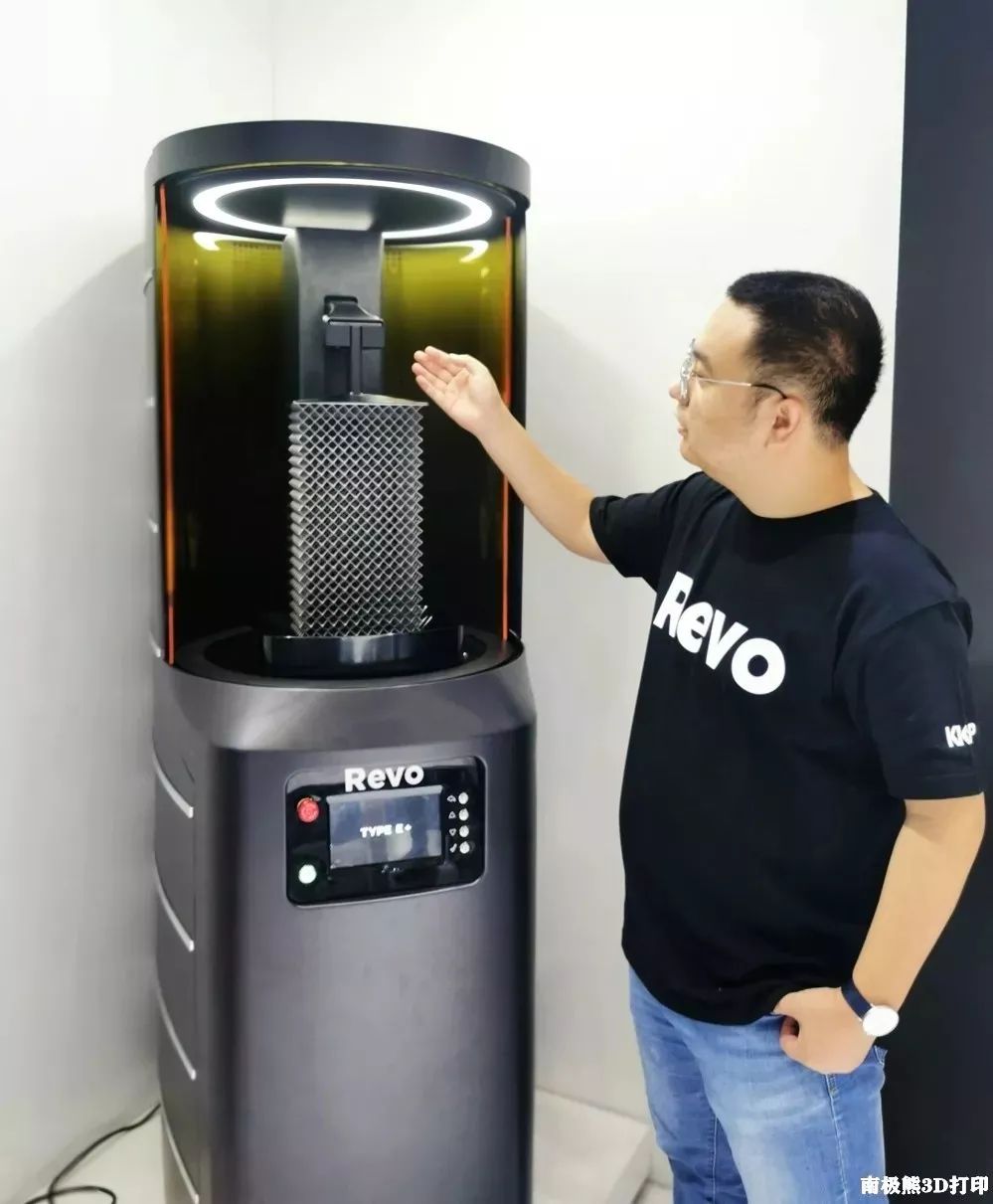 4 H* Y& y, N* H" q) |7 ^2019年10月15日,在深圳TCT展会上,Revo塑成科技(北京)有限责任公司发布了国内首款商业化工业级高速光固化3D打印机Type E+。南极熊做了详细报道《中国首款商业化工业级高速光固化3D打印机来了,Revo志在12万亿制造业市场》