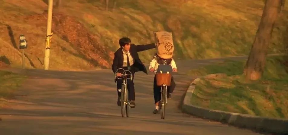 & i$ L4 R. P9 J9 I 男孩故意把纸袋扣到女孩头上 / 《情书》