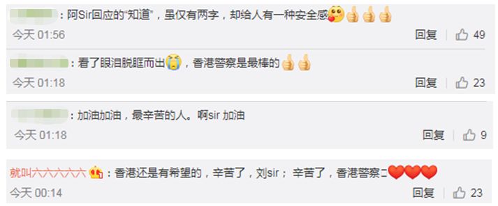 评论区,有网友为香港警察加油↓ J' H$ Q A. ?& [6 J$ l7 w