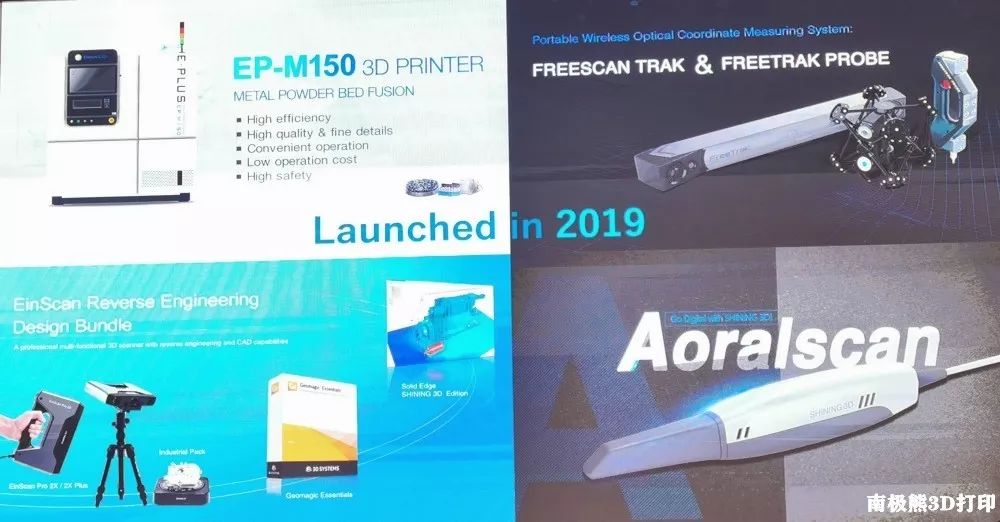 企业在研发方面的投入,最直接的表面就是新产品的发布频率,在本次大会上,先临三维展示了今年发布的多款新产品,包括EP-M150 小型金属3D打印机、无线CMM测量解决方案Freescan Trak、EinScan逆向工程与设计套装(包含EinScan Pro 2X Plus 多功能手持3D扫描仪, Geomagic Essentials软件, Solid Edge SHINING 3D Edition软件)、Aoralscan™齿科口内3D扫描仪。