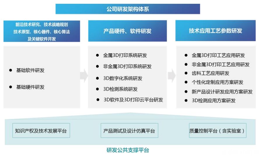 2018年先临三维的研发投入高达1.405亿,对于营收4.12亿元来讲,占比达到34%,这样的研发投入占比是相当高的。李涛表示:“从2012年开始,公司每年投入研发的资金都超过营收的20%,尤其最近三年投入比重特别大,主要原因是我们在做技术结构的调整。现在把我们研发分成三个层次:底层是面向未来的核心算法和软件技术储备,由我们的首席科学家带着研究院的教授及员工在开发,他们做的是探索性的工作;中间层叫基础研发,基础软件和基础硬件部门负责整个公司的软硬件平台的搭建,把那些可以在近期用到产品中的软件进行架构化和标准化,把研究院的成果做成更加稳健的软件模块和算法模块,供我们的产品部门调用,实现三维扫描跟3D打印共性的技术的平台和成熟组件的开发;最后就是产品层面的开发,各产品线的研发团队面向不同行业应用,面向客户需求的产品功能开发和用户体验优化。”! t" D* x8 u- ]7 |' s