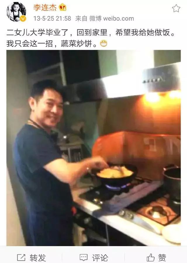 * w0 j( d3 Z! y& V% j$ R$ a e2013年,李连杰在微博晒过一张亲自下厨的照片,说二女儿大学毕业回家,希望自己做饭给她。显然说的是李苔蜜了。↓↓3 Q& S, ]# U2 t+ H0 o+ P' X; F9 ?1 b8 k