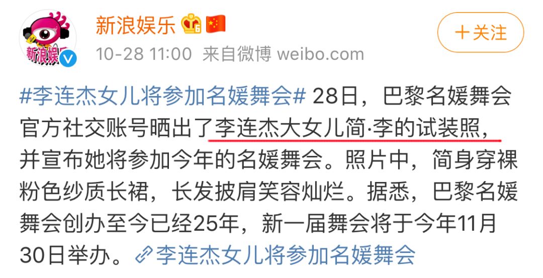 2 q* y# Y+ s& z0 d0 j) _5 [( A6 \: J0 d昨天,李连杰女儿要参加11月30日巴黎名媛舞会的消息秒速上了热搜榜第一。↓↓