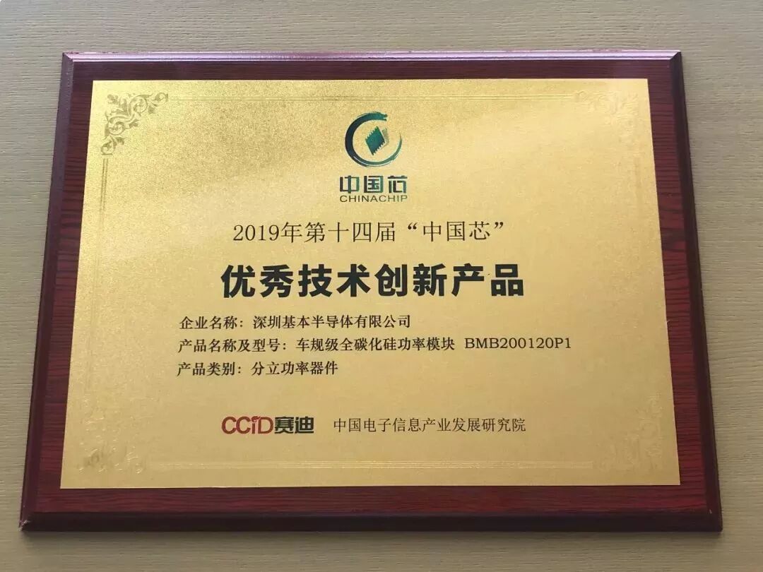 10月25日,第十四届“中国集成电路产业促进大会”在青岛举办,并现场揭晓了“中国芯”优秀产品征集结果。深圳本土第三代半导体科创企业 - 深圳基本半导体有限公司旗下车规级全碳化硅功率模块(BMB200120P1)荣获优秀技术创新产品奖。% ? m& t$ U2 j' n/ ~